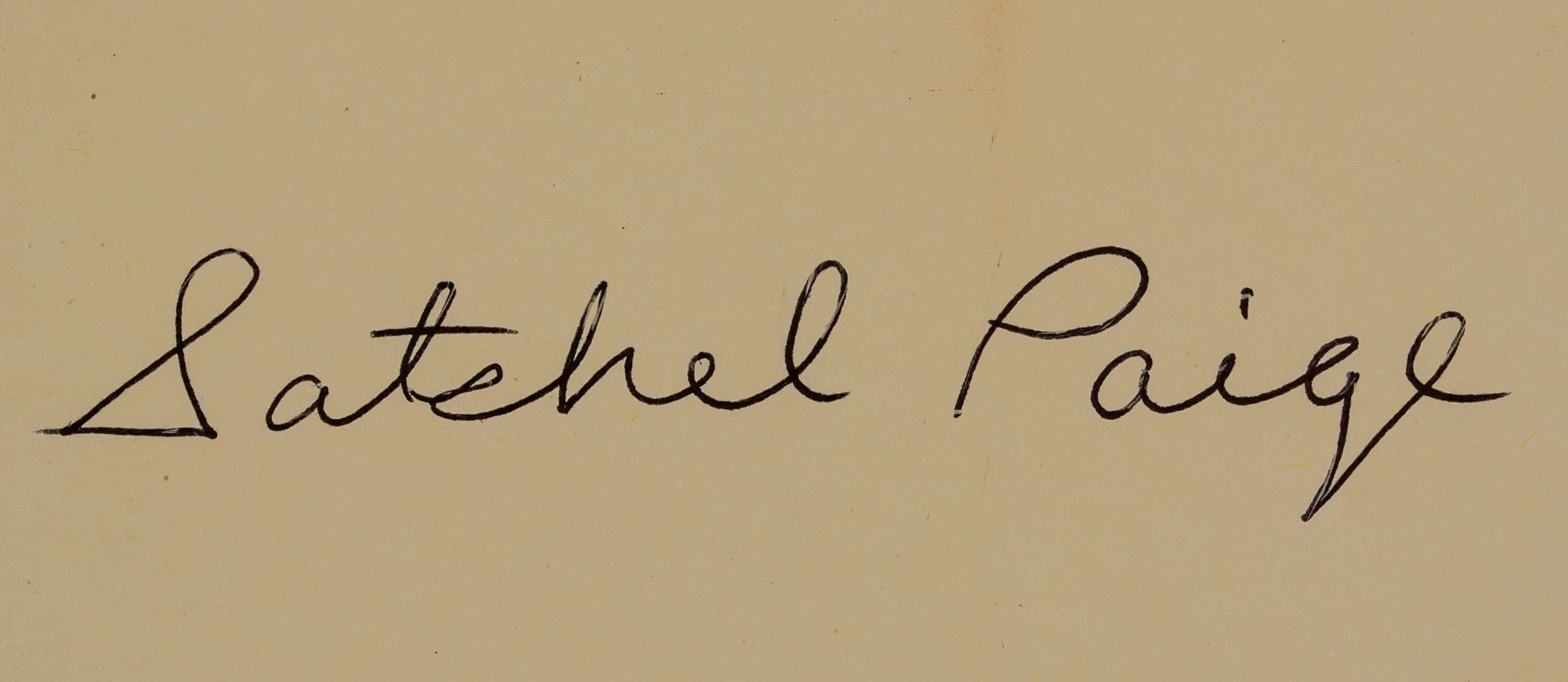 Satchel Paige autographed postcard (GPC). Accompanied with Letter of Authenticity. Photograph not included. 8 x 13.5 cm