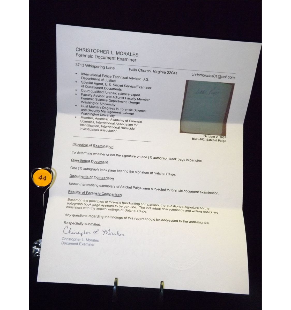 Satchell Paige, Sam Yearty and Unknown Autographed Die Cut. Appraised or estimated retail value $1000. Partial COA by Christopher Morales. All Sales Final. Please see terms and conditions of auction.