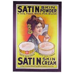 Satin Skin Powder litho on paper advertising sign, dated 1903-Detroit, colorful & VG condition, 45"H.