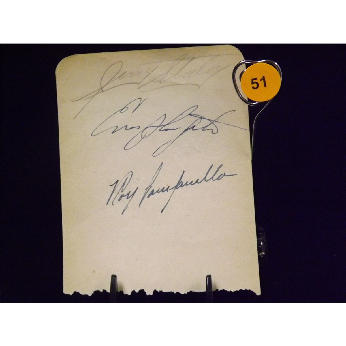 Satley, Slaughter & Campanella Die Cut Autographs with Additional Autograph on Reverse (Unknown). A
