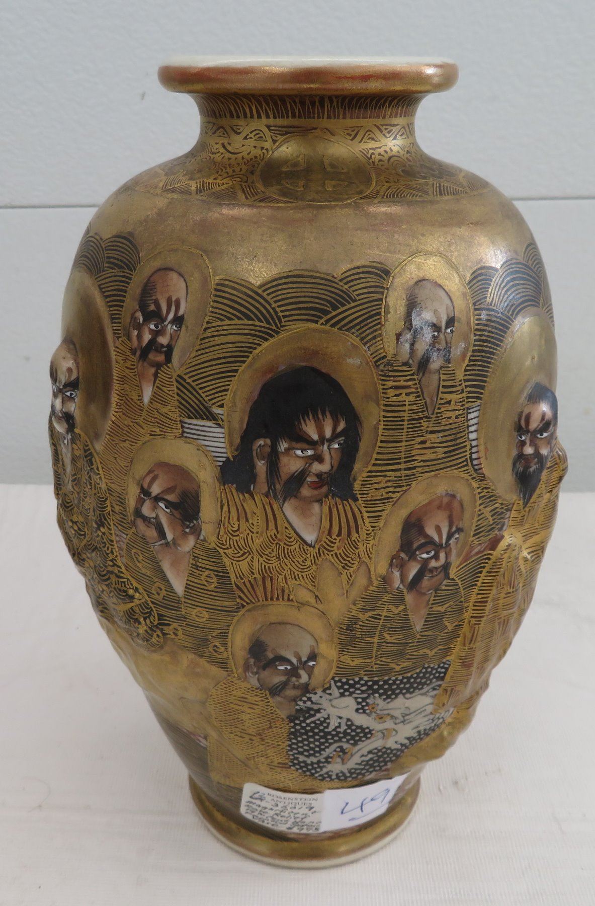 Satsuma Vase, 19th century item. Made of porcelain, the item measures 8" x 5". Japan. Condition: Good, see images. Shipping: $45.00 USA estimate only, w/insurance and signature, double-boxed, due to value and size.