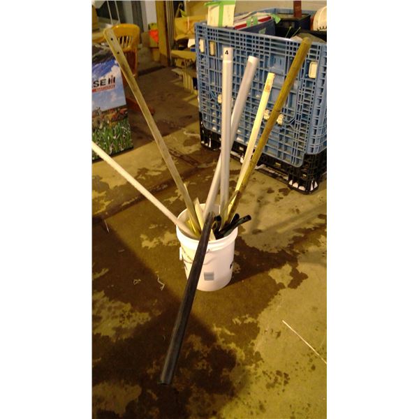 bucket of marker stakes
