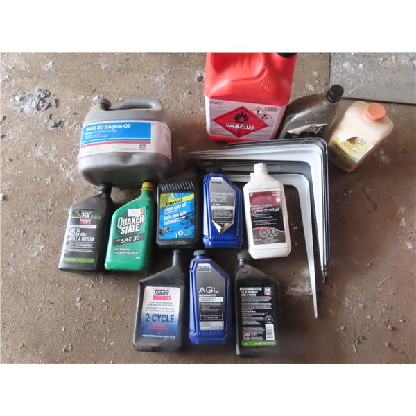 tote of caulking, jerry can, funnel, etc.