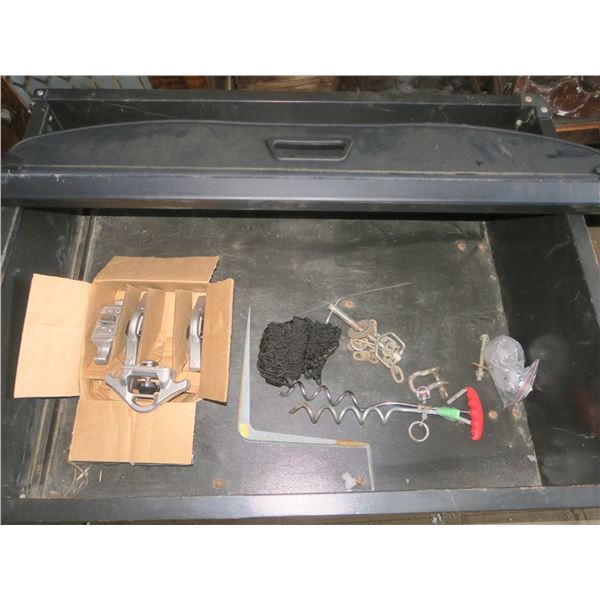 Kioti 25 HP tractor c/w F.E.L. & 3PTH, Toro zero turn mower, Ariens garden tractor, 3PTH disc, plow, harrows, cultivator, blade, sprayer, Single axle trailer c/w ramp, 20’ sea can, metal shed, Water tanks, Barrels, Shop cabinets, Cement mixer, 3 job site boxes, Pressure washer, Air compressor, Shop tools, Composting toilet, Portable toilet, Table saw, Chop saw, Tool boxes, Whipper snipper, Gas post hole auger, 2x6 rough lumber, Garden tools, pots, supplies, benches, hoses, décor.