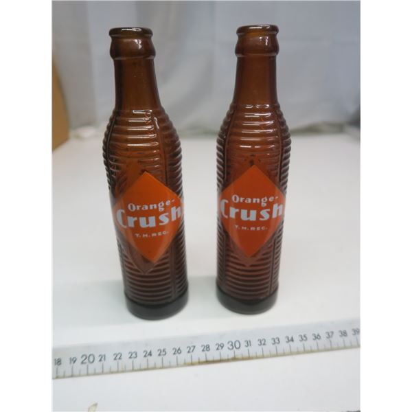 2 brown Orange Crush Bottles - like new - 1 printed off center