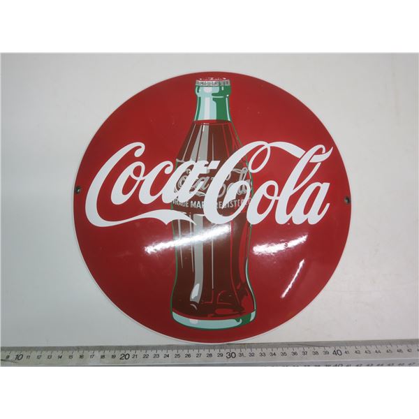 1990s Convex 12" porcelain Coca-Cola metal button sign
