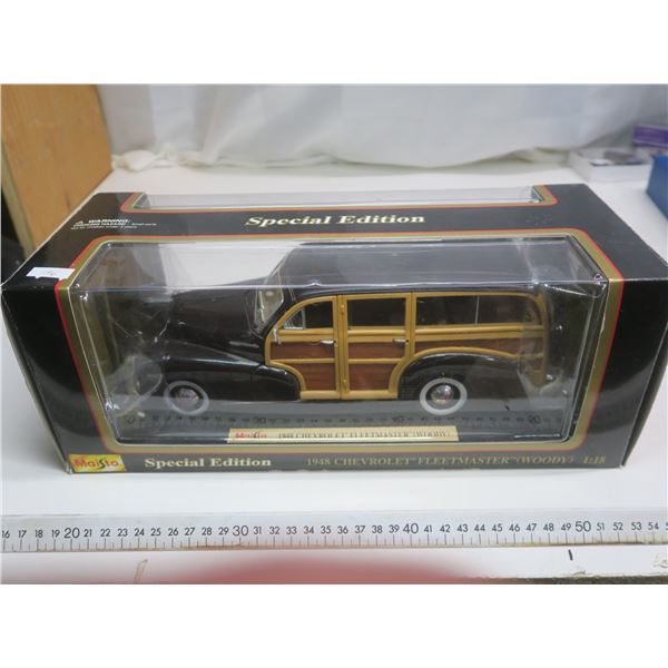 1948 Chevrolet Fleet master Woody Wagon model on display board