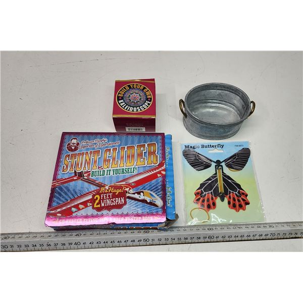 Children's DIY toys - Glider plane, kaleidoscope, etc. & décor metal tub