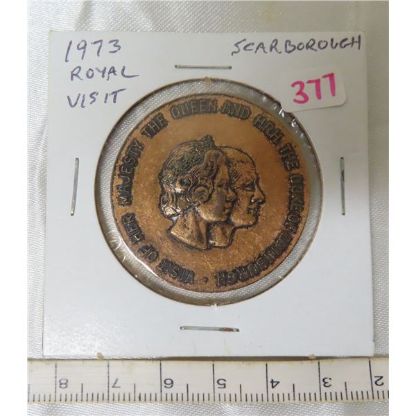 1973 Royal Visit to Scarborough, Ontario medal. 37mm bronze.