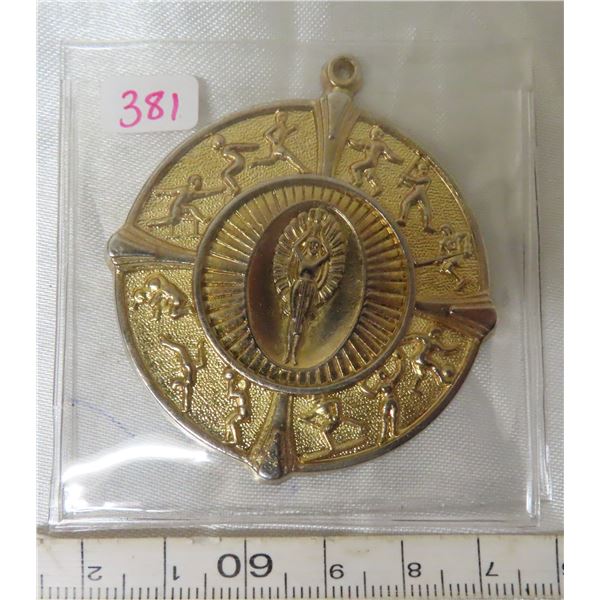 Unknown brass sporting medal. Uniface. Depicts 12 sports. Massive 50mm.