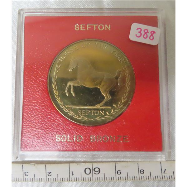 1982 Sefton, Horse of the Year medal. Bronze. Housed in a hard plastic holder.