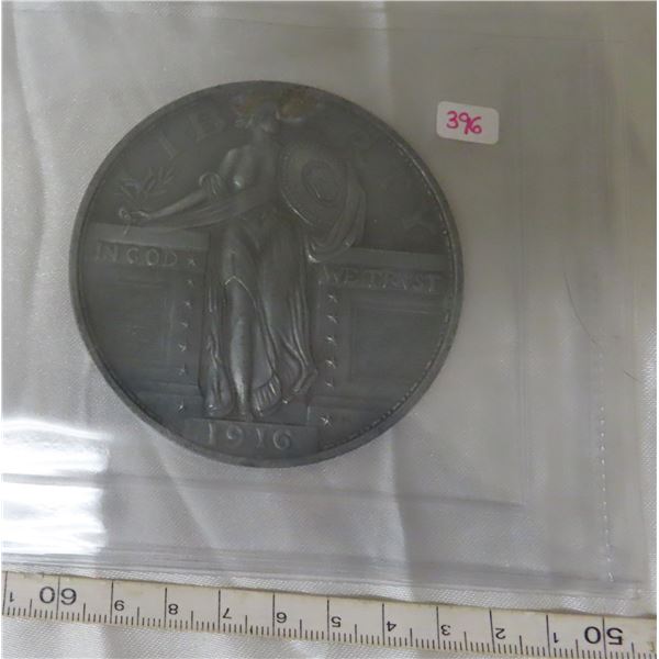 Replica of a U.S. 1916 Liberty Quarter Dollar. Massive medal is 75mm in size. Not a real coin.