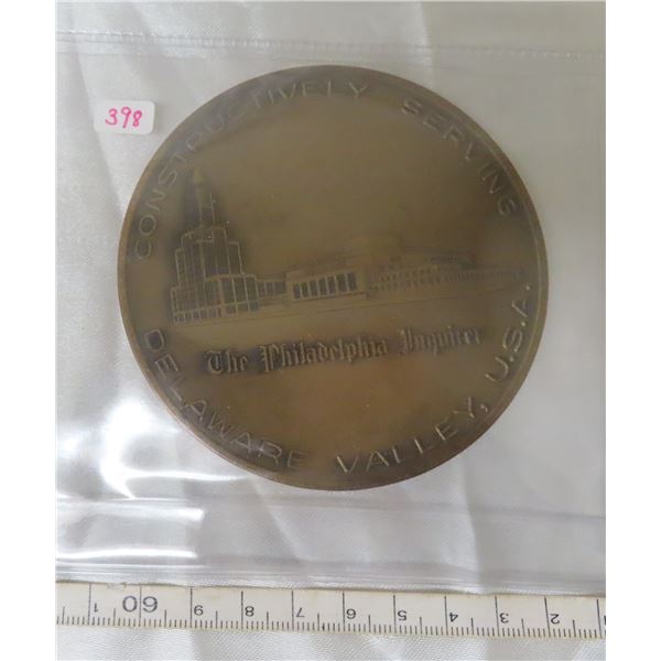 1960 – 1970 Philadelphia Inquirer medal made for Delaware. Massive medal is 90mm in size.