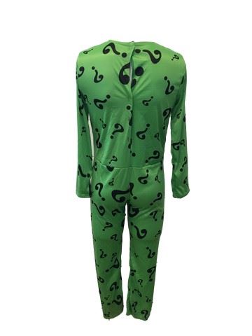 Saturday Night Live TV - Jim Carrey Riddler test jumpsuit, green jumpsuit with black question marks, velcro in the back.