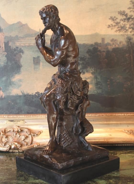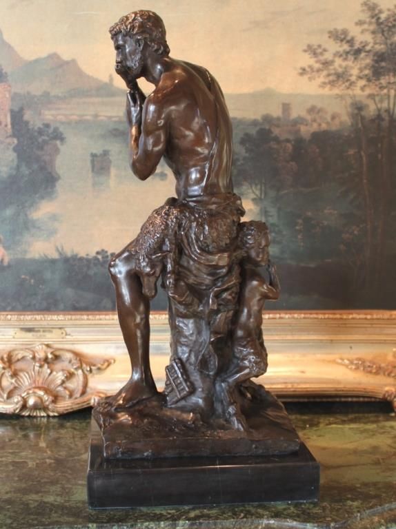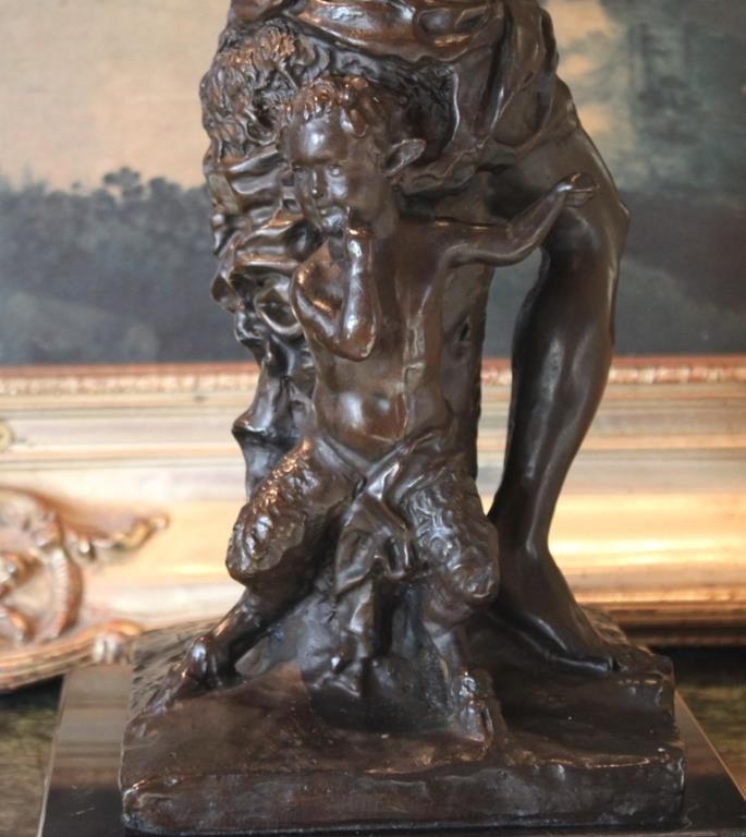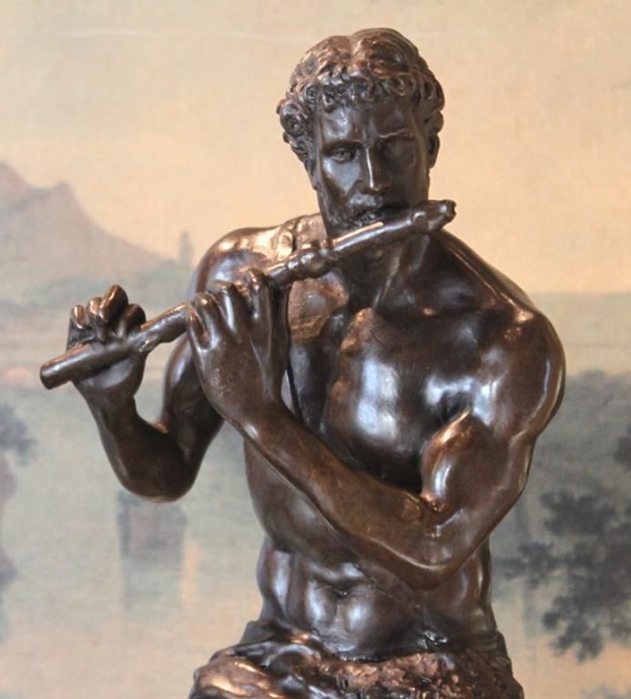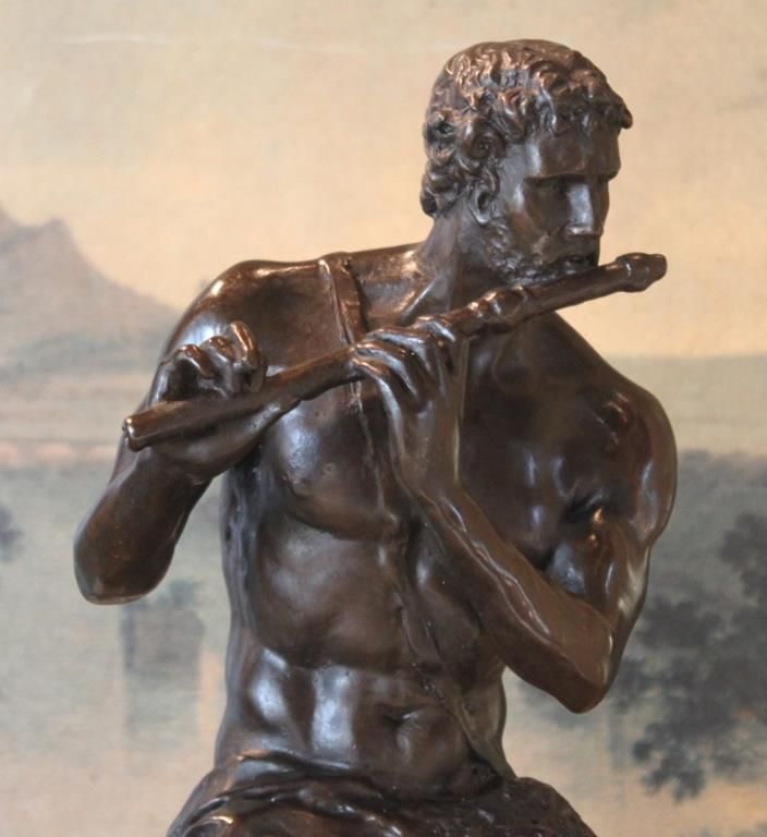 Satyr Bronze Sculpture, 18H x 8.25W x 8.25D 30lbs. This bronze sculpture was produced using the "Lost Wax" casting method. The "Lost Wax" Cast method is the most precise metal casting technique in existence, ensuring exquisite detail of the original host model which is usually sculpted in clay or wax. This "Lost Wax" casting method is an extremely labor intensive and expensive process, but the end results produce a Heirloom Quality Masterpiece!