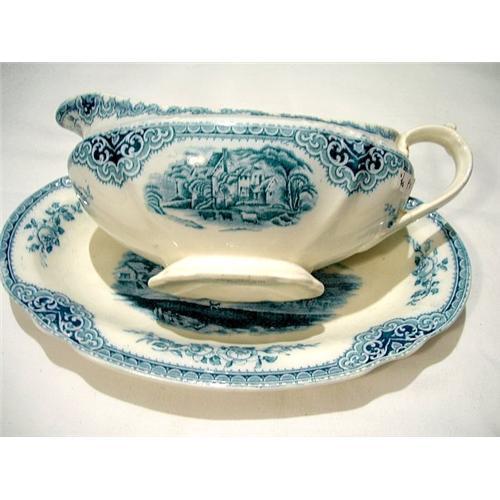 Sauce Pot with Plate The Sandown J&G Meakin England. Representing farm scenes (printed). In good conditions, with the arm fixed as you can see in the pictures, pottery. From 1900. Width (Plate): 8.5 inches. Depth: 5.5, Height: 0.9 inches. Width (Sauce Pot): 7.5 inches, Depth: 3.6 inches, Height: 3.2 inches.