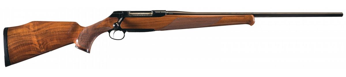 Introduced in 2001. The barrel is tapped for sight mounting with filler screws installed. Mounted on a checkered walnut two-piece pistol grip stock with Schnabel tip, flush cups, right hand palm swell and factory solid recoil pad.