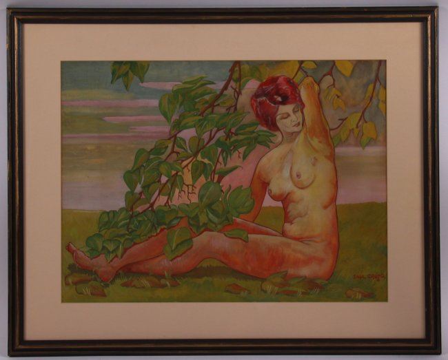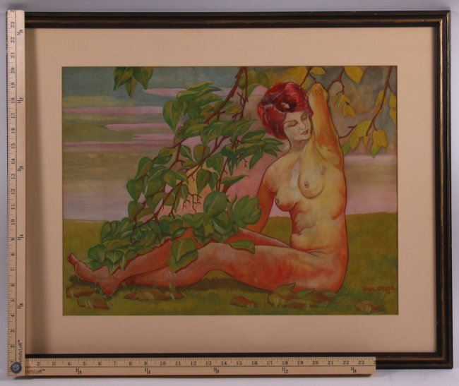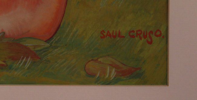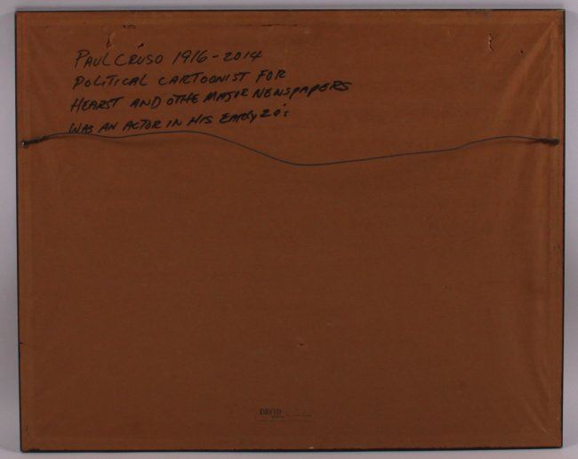 Saul Cruso (1916-2014), original oil on canvas. Known as a cartoonist for Hearst and other major newspapers. (Size: See second photo for measurement.) Photos are part of the description representing the condition report. Pangaea Auctions urges Bidder's to view all attached photos.