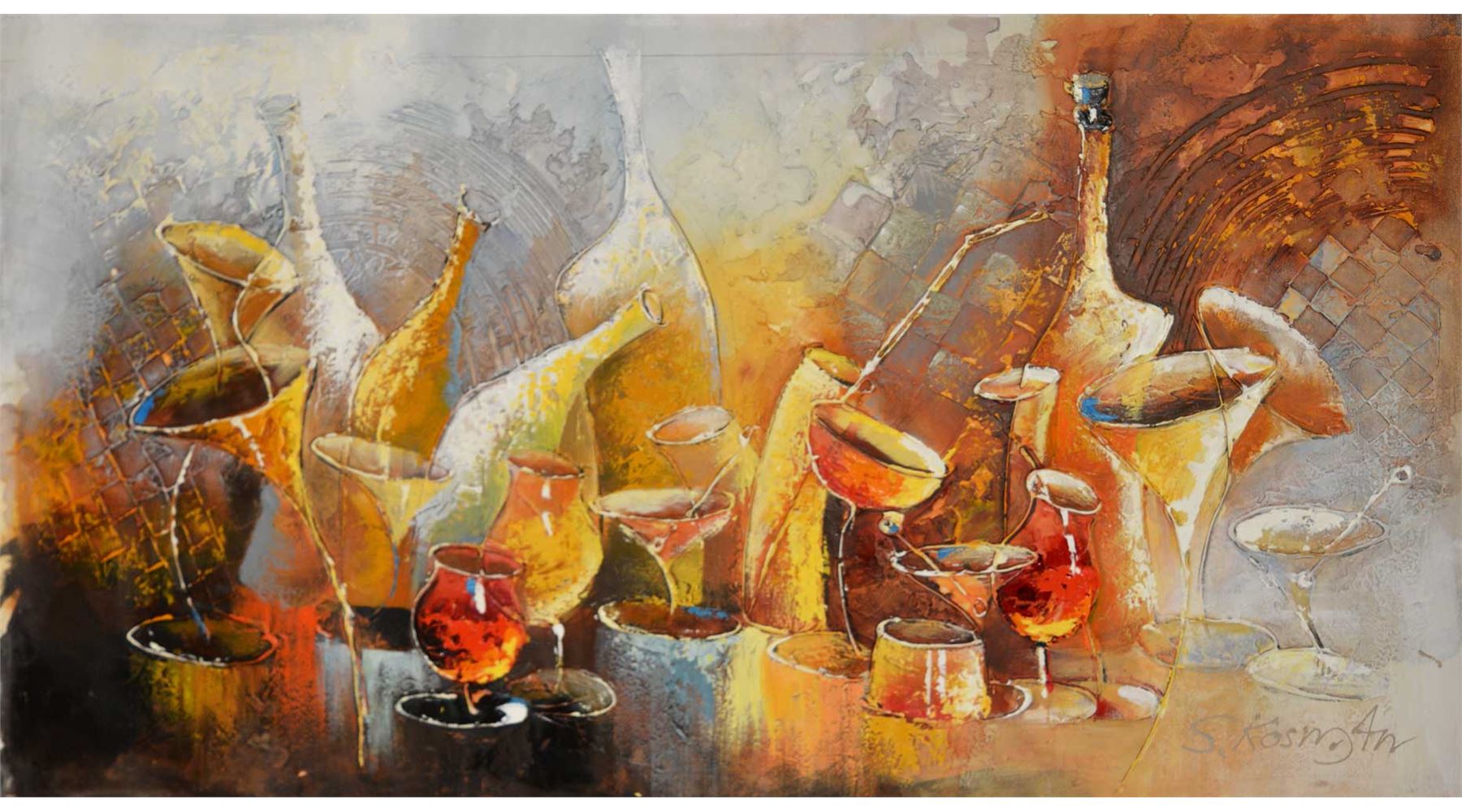 Artist: Shaul Kosman - Title: Untitled - Medium: Original Acrylic on Canvas - Signature: This one-of-a-kind work is hand-signed by the artist at the bottom of the image - Image Size: Approximately 24 inches x 48 inches - Framed: Unframed on Unstretched Canvas - Details: This work comes with a Certificate of Authenticity - Biography: Shaul Kosman was born in Lithuania in Kaunas, in 1959. - Musician, architect and artist are the three facets of Shaul's talented and creative personality. He was raised in the atmosphere of classic European architecture in Baltic. Since childhood he played jazz and painted. Probably this is why the main themes and idea of his paintings is a combination and connection between music and architecture. - After immigrating to Israel in 1997, the love for classic shapes and jazz music transferred into a deep understanding of the pulse of the modern city. His paintings are a rich combination of acrylic and oil paint layered and textured using tools, spoons and other utensils. His expansive use of vibrant and brilliant colors enhances the content of his work and draws the viewer into his world.