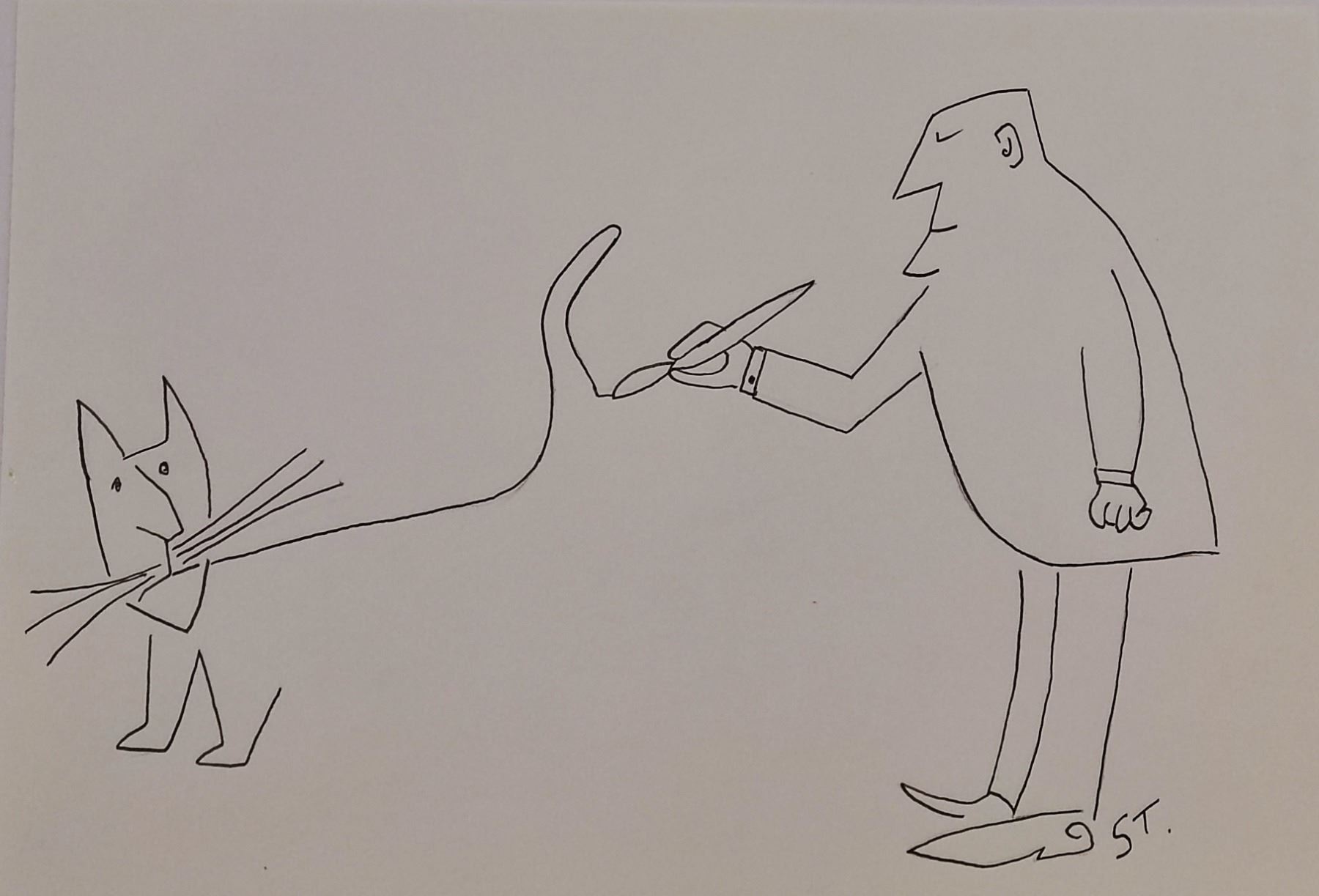 A drawing that featured in The New Yorker in 1954 of a man drawing a cat.