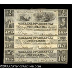 <TABLE cellSpacing=0 cellPadding=0 width="100%" bgColor=#000000 border=0><TBODY> <TR><TD width="100%"><TABLE cellSpacing=1 cellPadding=3 width="100%" border=0><TBODY><TR><TD width="100%" bgColor=#79735c><FONT face=arial color=#ffffff size=3><B>Description</B> </FONT></TD></TR><TR><TD width="100%" bgColor=#ffffff><FONT face=arial size=2><B>Sault De St. Marys, MI - Bank of Chippeway</B></I><BR>$2 Jan. 5, 1838 G2 Lee SAU 1-1 AU<BR>$3 Jan. 3, 1838 G4 Lee SAU 1-2 AU<BR>$5 Jan. 3, 1838 G6 Lee SAU 1-3 VF<BR>$10 Jan. 3, 1838 G10 Lee SAU 1-6 AU. (175-225 ) (4 notes) </FONT></TD></TR></TBODY></TABLE></TD></TR></TBODY></TABLE><BR><TABLE cellSpacing=0 cellPadding=0 width="100%" bgColor=#000000 border=0><TBODY><TR> 4 notes Important notice: Heritage usually auctions material at the rate of 200-250 lots per hour. On some occasions eBay Live bid software or the Internet may not be able to keep up with the pace of the auction. We recommend placing a realistic absentee bid now as insurance to avoid disappointment. Occasionally the auctioneer may eliminate or reject an eBay Live bid, and the auctioneer may also reopen a lot after the close of the eBay live bidding (usually because we missed an audience bid), and may reject your bid even if it shows you as the winning bidder. By bidding via eBay Live, you agree that Heritage may award the lot to another bidder at its sole discretion under the circumstances described above or any other reasonable circumstances. Also please note that all Heritage lots purchased through eBay Live carry a 20% Buyer's Premium. Please make sure you read the Terms and Conditions before you bid.</TR></TBODY></TABLE>