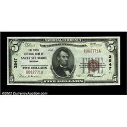 Sault Ste Marie, MI - $5 1929 Ty. 1 The First NB Ch. # 3547An attractive example which is graded as.