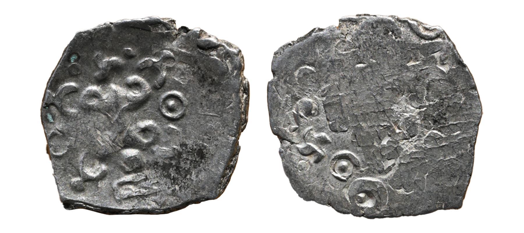 Saurashtra Janapada, (3rd-2nd Century BC), Silver 1/4 Karshapana, 1.00 gms, Obv. Shrivatsa with ancillary symbols around, Rev. Uniface, Hardaker # Non-Imperial series, SR57, pg. 276, very fine+, very scarce.