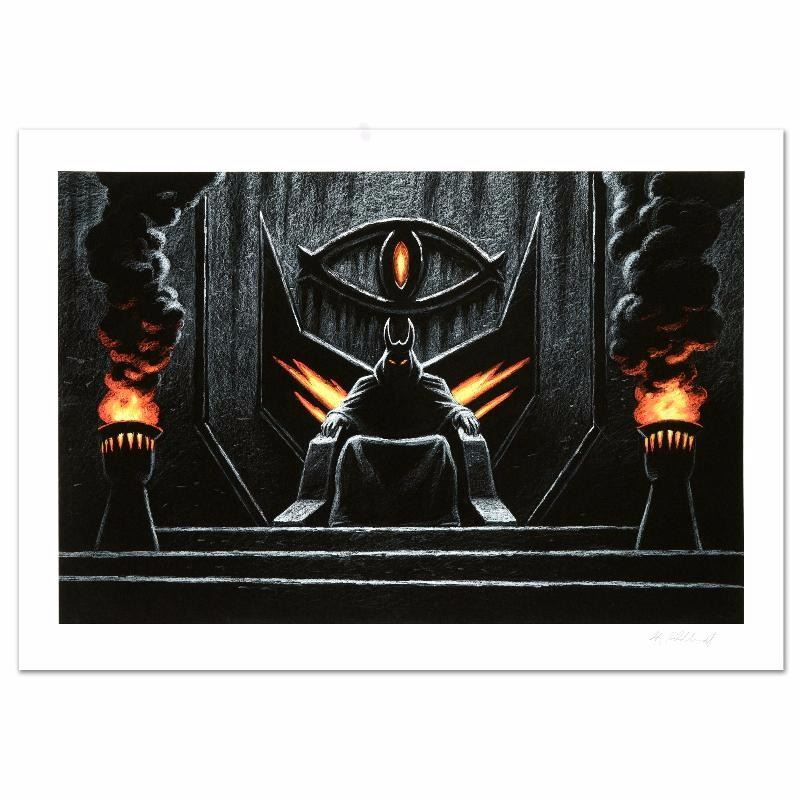 Known world wide for his fantasy and science fiction illustrations, Greg Hildebrandt has created an abundance of fascinating artwork including, and most notably his illustration work for J.R.R. Tolkien's 'The Hobbit' and 'Lord of the Rings'. "Sauron The Dark Lord", originally created in the 1970's for Ballantine Books, is a limited edition giclee on paper, numbered and hand signed by Greg Hildebrandt! Includes Certificate of Authenticity! Measures approx. 34" x 23.5" (with border), 30" x 19.5" (image). Retail Price $995.00. PRICE INCUDES FREE SHIPPING IN THE U.S. - SHIPPING WILL BE ADDED TO YOUR INVOICE FOR ALL BUYERS OUTSIDE OF THE U.S.