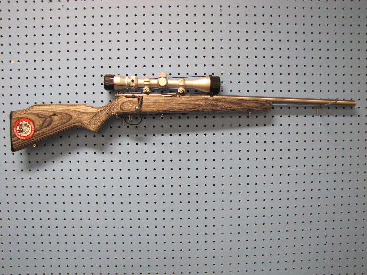Savage; .17 HMR; Model 93R17; Bolt Action; Clip; Stainless; 3-9x40 Bushnell Scope; Accutrigger