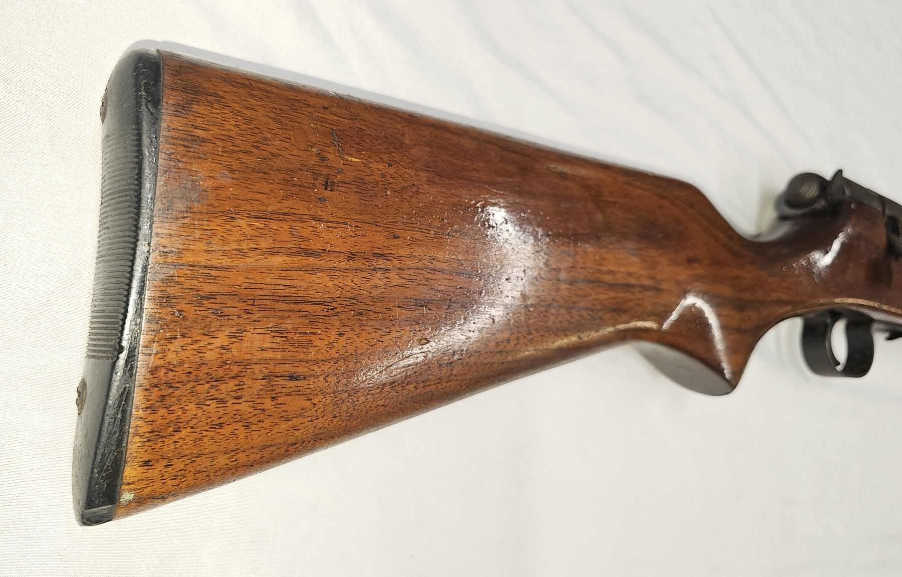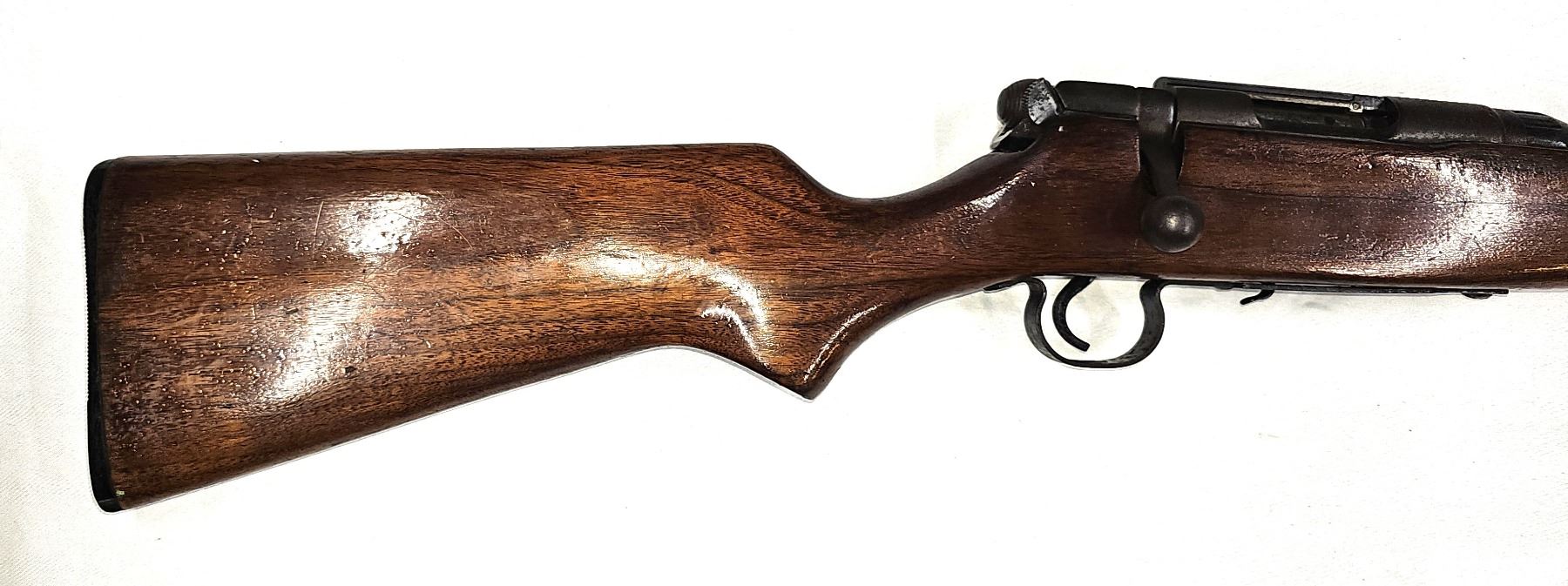 Stock is refinished and varnished - has a large crack (about 5 inch long) running down right side from