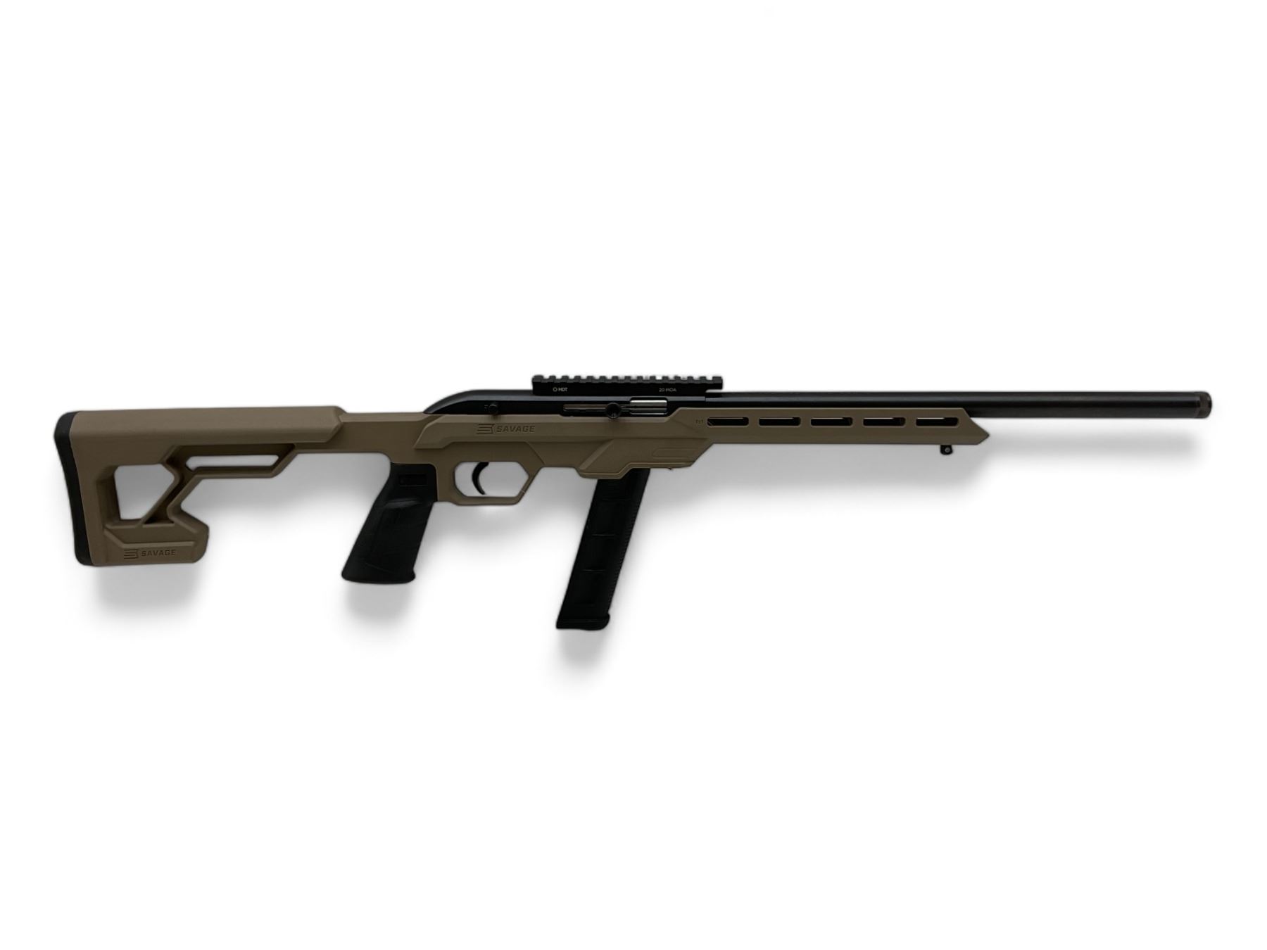 Savage 64 Precision Semi Auto Rifle 22LR 16.5" Threaded Heavy Barrel FDE Chassis, New. Comes with one detachable magazine. Receiver drilled and tapped with MDT one piece 20 MOA rail. This is a non-restricted firearm.