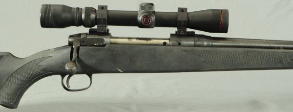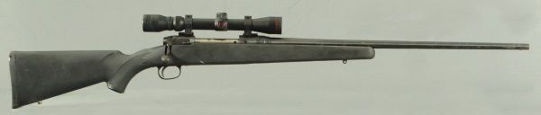 24" barrel, Simmons 3-9 x 32 scope, rust throughout, bolt is free but does not fire when trigger is pulled. Ser# F554715.