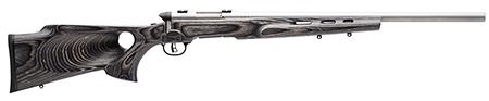 laminated thumbhole stock. The receiver and barrel have a stainless finish.
