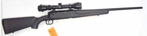 Savage ARms AXIS XP .308 Rifle. Finish: Matte Black. Action: Bolt Action. Stock: Black Synthetic Stock. Capacity: 4+1. # of Mags: 1. Safety: 2 position safety. Barrel Length: 22" free floating. Overall length: 43.875". Weight: 6.5 lbs. Features: Swivel studs, detachable box magazine, dual pillar bedded, 3-9x40 scope included. EST: $400-$450