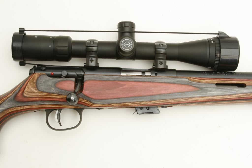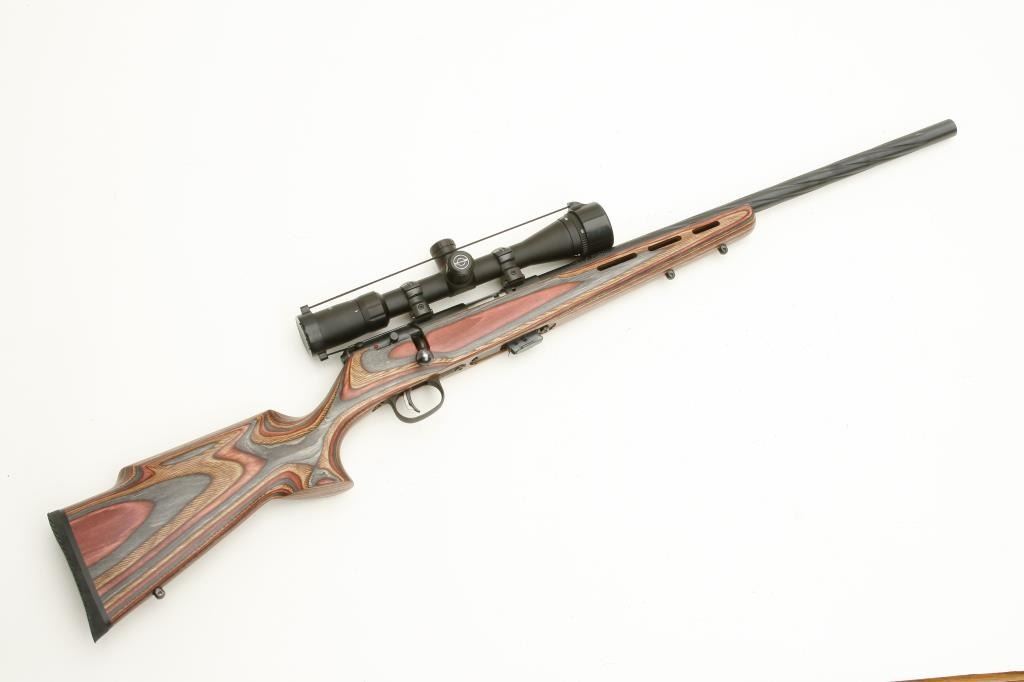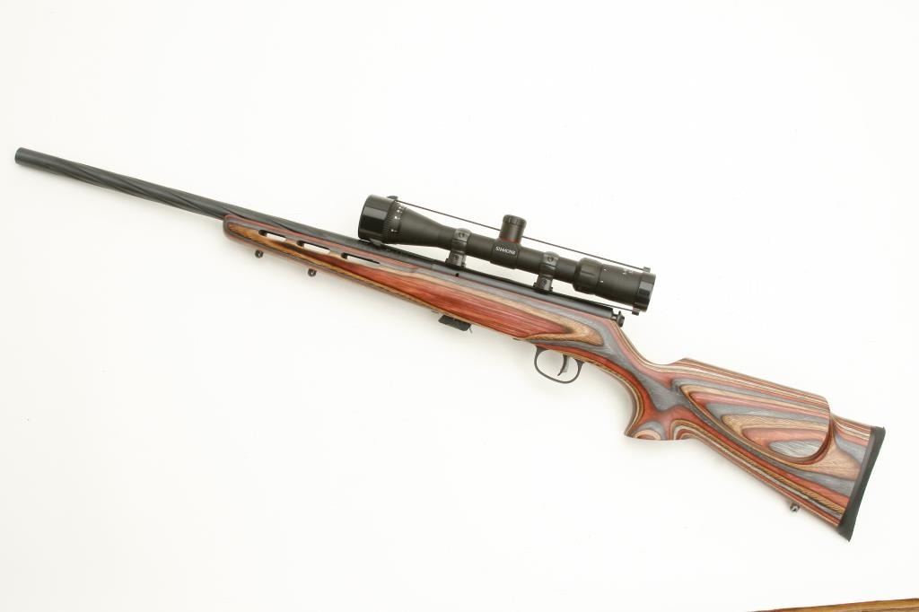.22 L.R. caliber with laminated stock, twisted heavy barrel, and Simmons 3x9 scope. In fine to excellent condition with slight use. 99% overall. (Modern) Est.: $400-$800