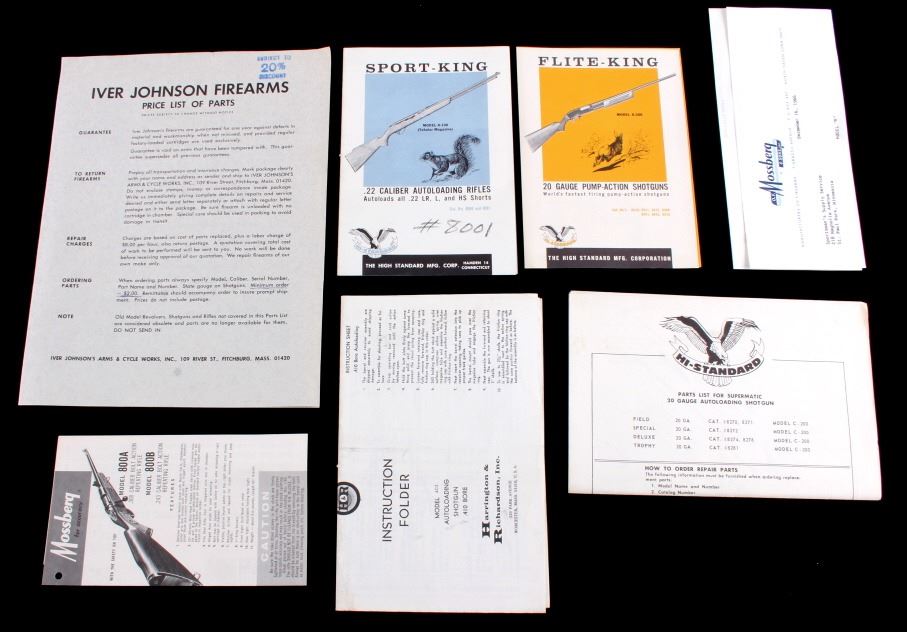 This is a collection of Savage Arms catalogs from the 1950's to the 1970's. The collection also includes ephemera from Iver Johnson, Harrington & Richardson, Mossberg, and High Standard. The catalogs are in good condition. They measure 8.5" x 11".