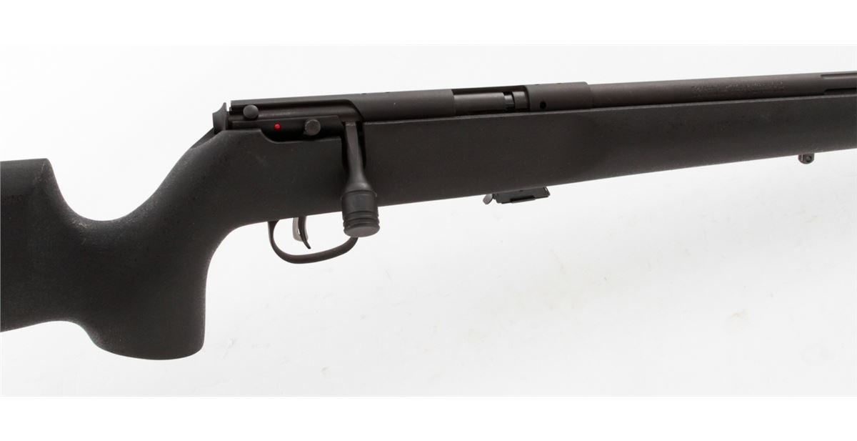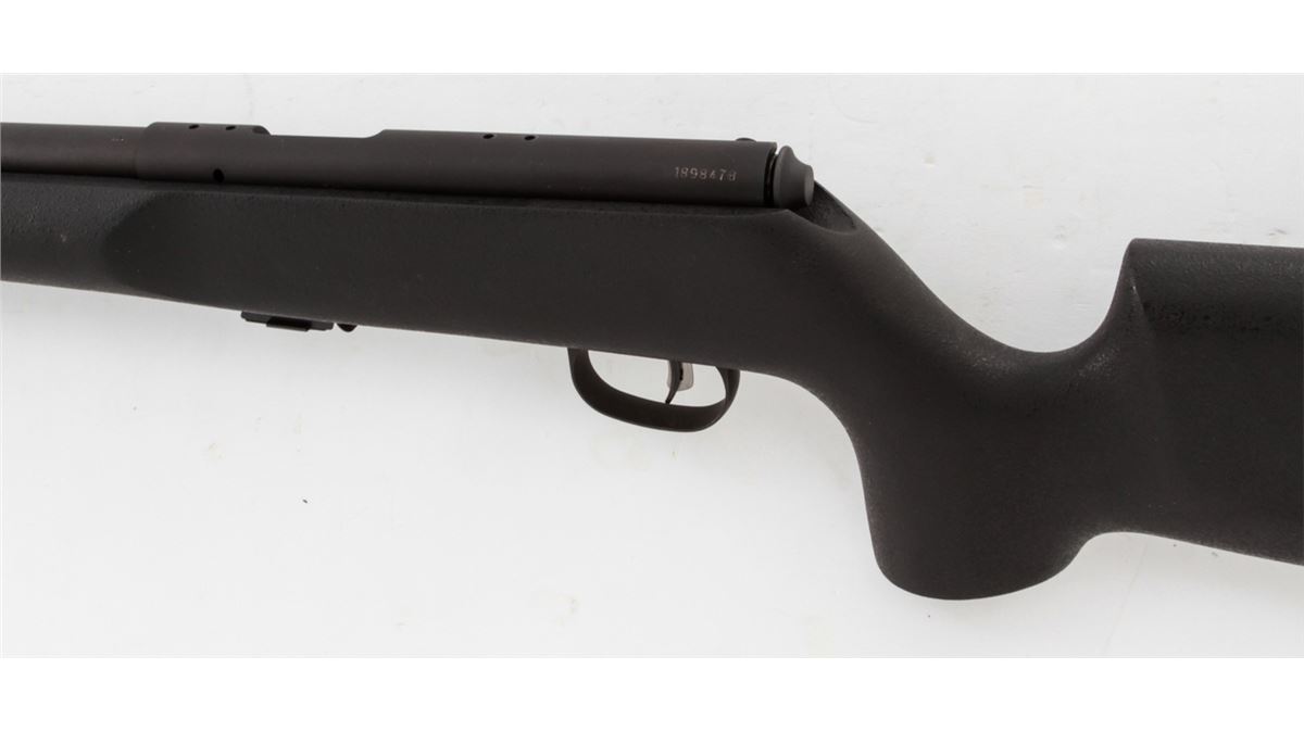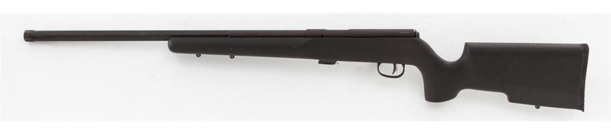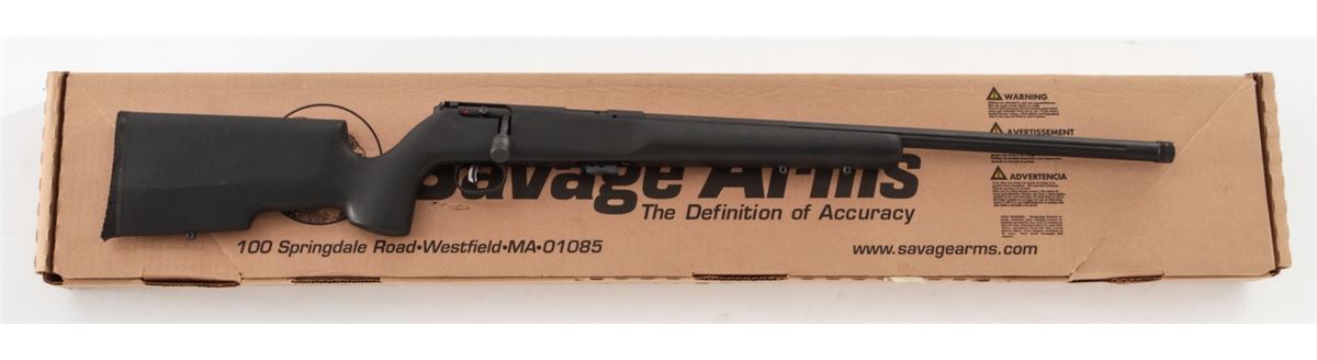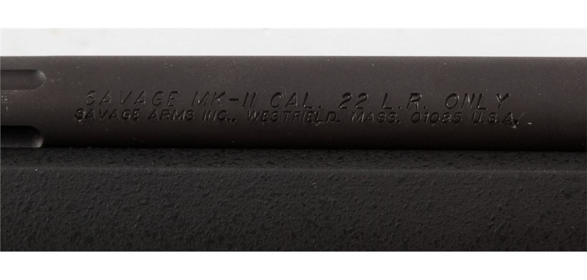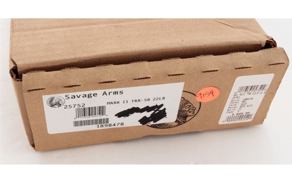 Savage Arms Mark II TRR-SR Bolt Action Rifle, #1898478, .22 L.R. cal., 22'' fluted and threaded barrel, matte black finish, textured synthetic black pistol grip stock, Accutrigger, one (1) magazine, gun lock, Picatinny rail that has not been installed, box with matching end label, and owner's manual. Condition is excellent, remaining new and unfired, with light marks overall from handling. Original hang tag still intact. Retails @ $609.95. Est.: $300-$500. (Modern) (Field Time)