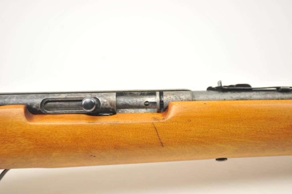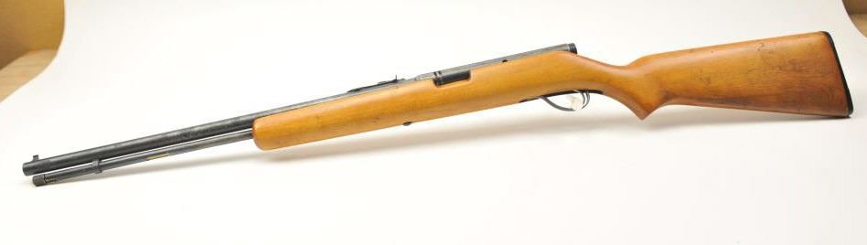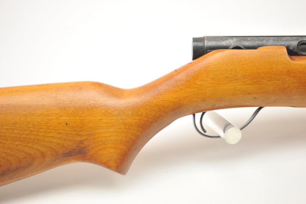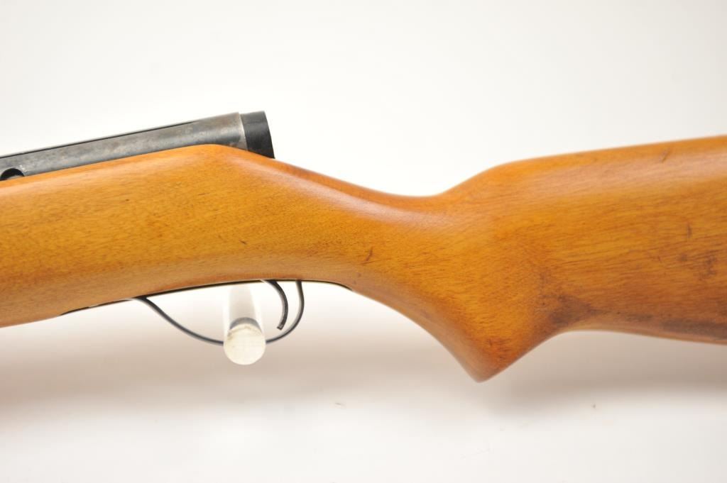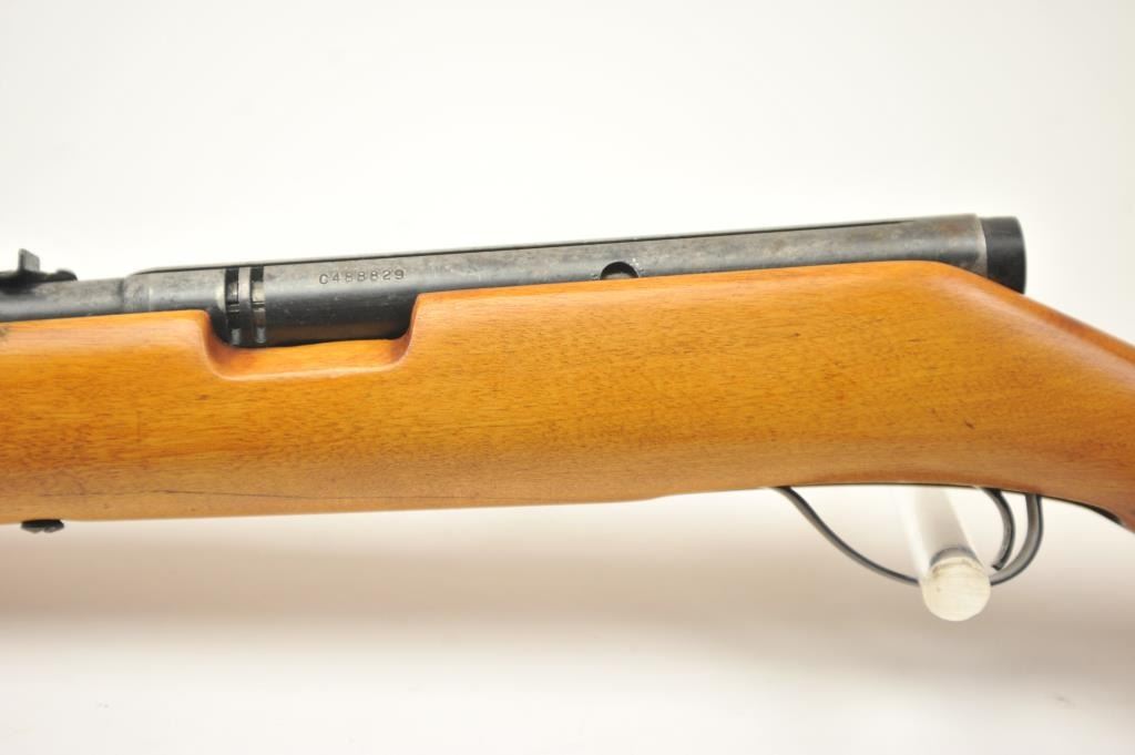 Savage Arms Model 160 semi-automatic rifles, .22 Long Rifle caliber, Serial #C488829. The rifle is in good overall condition with a 20” barrel with a full-length magazine. The rifle retains some blue finished moving to amottled grey patina. The smooth wood stock is in very good condition. The bore is fair, the action functions and the markings are legible. Est.: $35-$70. (Modern).