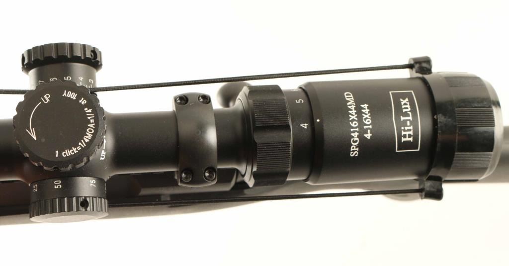 Rifle, Bolt-action. Matte-blued metal finish, with a black, synthetic, pistol-grip stock. Rubber recoil pad. Sling swivels attached. 22' barrel. Chrome bolt. Thumb safety on tang. 3-rd detachable box magazine. Bore is excellent/bright. Action is smooth/tight. Bolt release on right side of stock. Mounted with a Hi-Lux, SPG416X44MD, 4-16X44, scope. Scope is in excellent condition, with clear optics. Rifle is in almost new condition, with no visible mars. NRA Condition-Excellent. Modern Firearm.