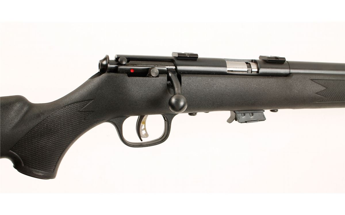 Blued, detachable box magazine fed bolt action rifle with a 21" bull barrel' a synthetic stock, box and documents. Metal finish is very good. Bore is mirror bright. Stock has no visible damage. Action is good. Condition is immaculate.
