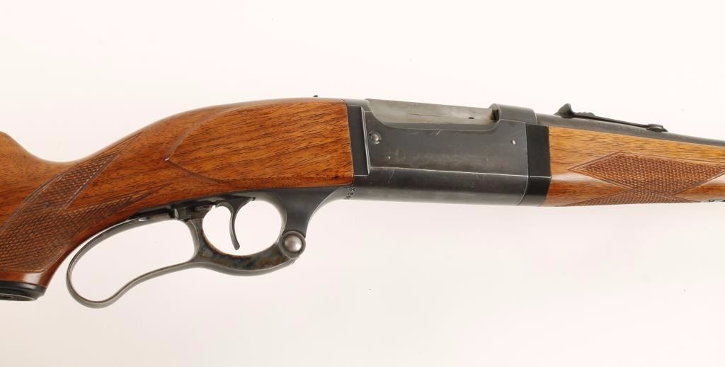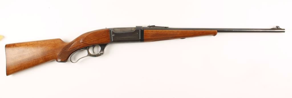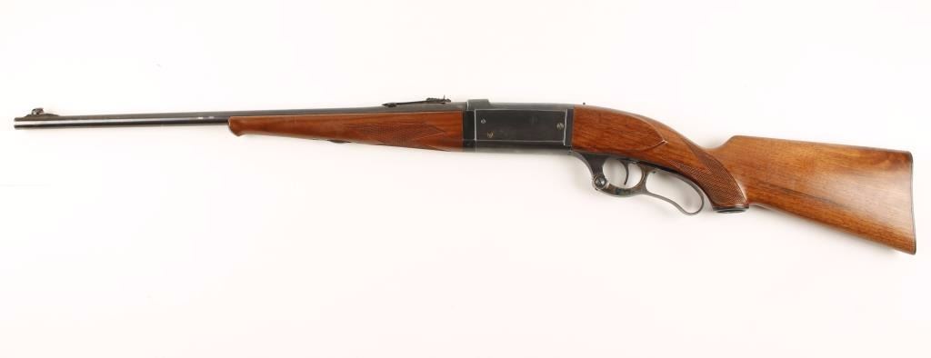 'Deluxe Grade' Lever action take-down rifle chambered in .30-30 Winchester, circa 1955. Features a blued finish, 22" tapered barrel, ramped front sight, adjustable rear sight, take-down receiver, round counter, serrated trigger, cocked indicator, case hardened lever, deluxe hand checkered schnabel walnut forend and pistol grip shoulder stock with serrated metal buttplate & checkered pistol grip cap. Rifle retains 75% original bluing with wear on the receiver from carrying, light muzzle wear, and shows dulling case colors with areas of bright colors in protected areas. Action is smooth, bore is excellent, and wood stocks are very fine with sharp checkering. Condition very good++. ***C&R Firearm*** ***Modern Firearm***