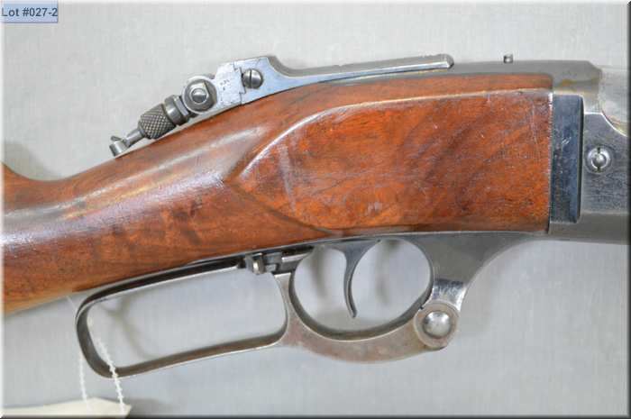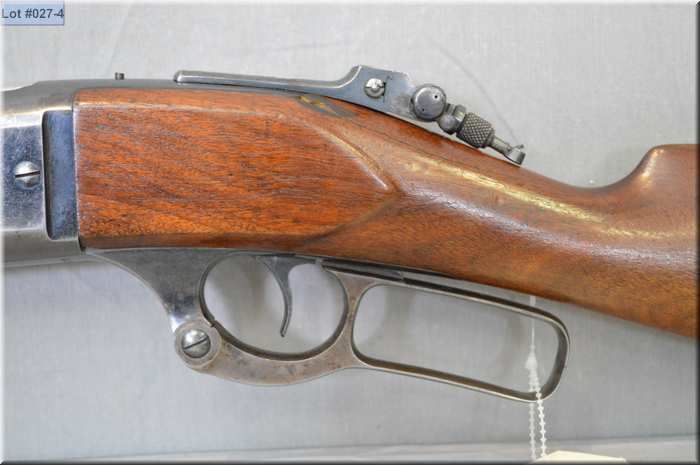 Savage Mod 1899 .303 Savage cal lever action Rifle w/ 26" bbl [ blued finish fading in carry areas, barrel sights, including Lyman tang mounted peep sight, butt stock cracked on left side by upper tang , crescent butt plate ] Ser # 107821