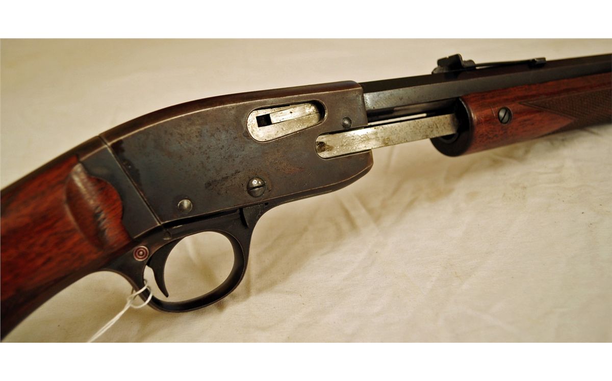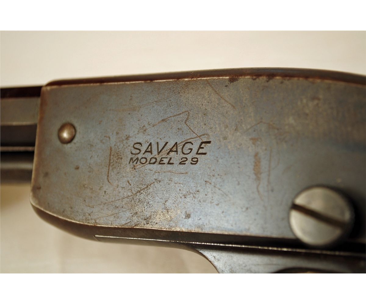 Savage Model 29, 22 Cal. Short, Long, Long Rifle,Pump Rifle, w/ Leather Case"Order from Numerich Arms19.5 inch tubular magazine insert" Rifle is in good condition. See photos for more information. Gun is believed to be but not guaranteed to be in shooting order. Kennedys Auction Service has not attempted to test fire any gun in this auction and all guns are sold "IN AS IS CONDITION" and are not guaranteed to be operational.