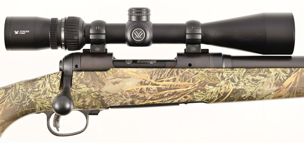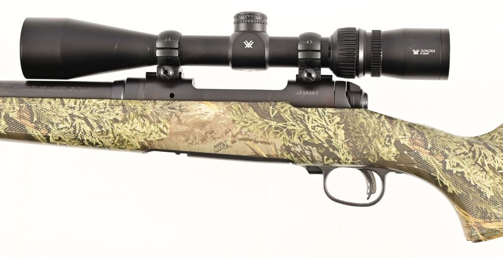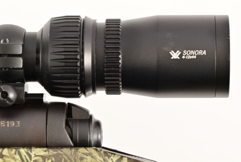 SN J268193 22" fluted, heavy barrel, good bore. Camo stock, Acu-trigger. Vortex Sonora 4x12 scope. Modern.