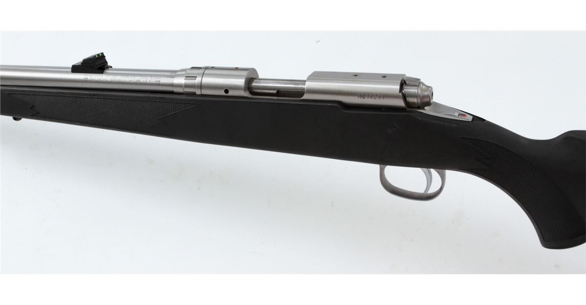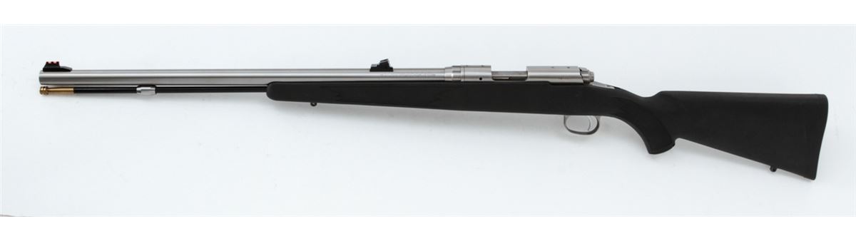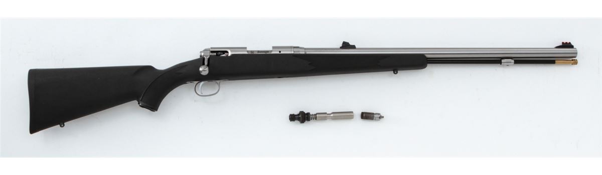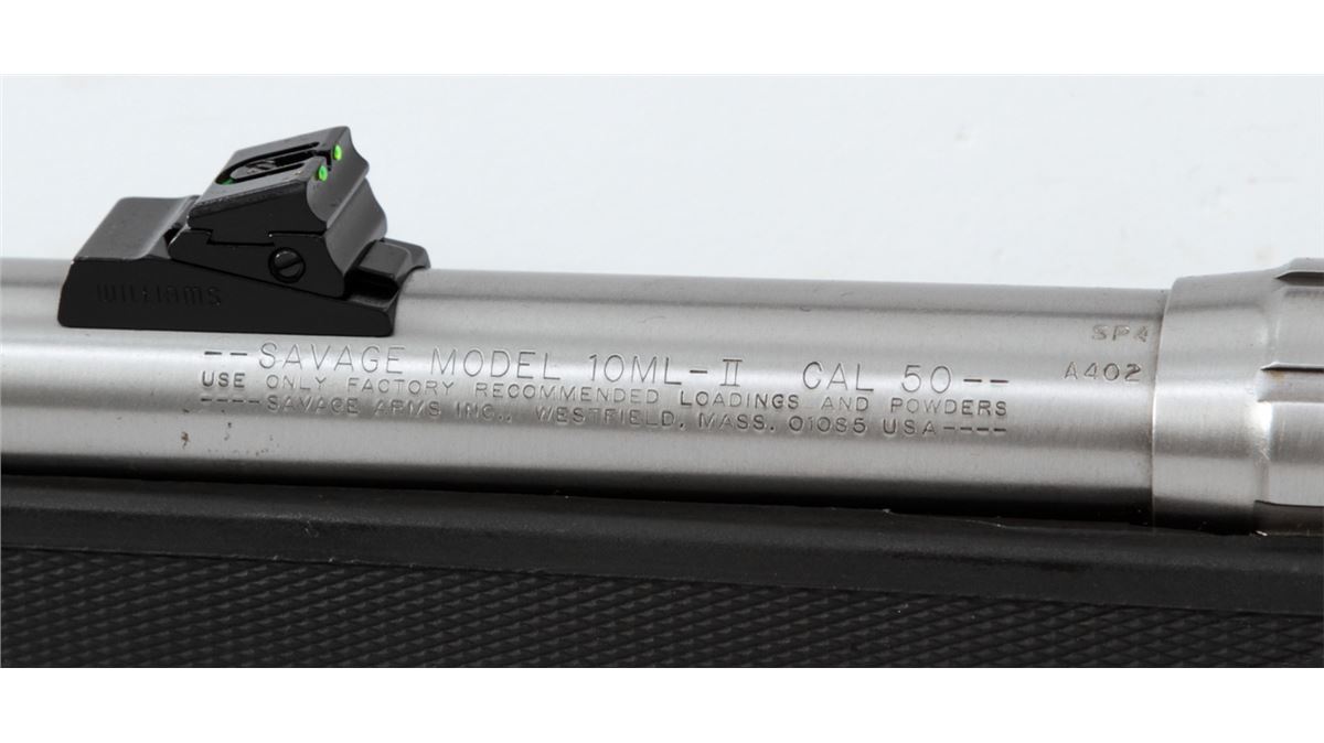 Savage Model 10ML-II Breechloading Black Powder Rifle, #M014241, .50 cal., 24'' barrel, stainless steel, factory fiber-optic sight, and black Zytel checkered stock. Condition is excellent showing just light use, with muzzleloading conversion accessories. Est.: $250-$450. (Antique)