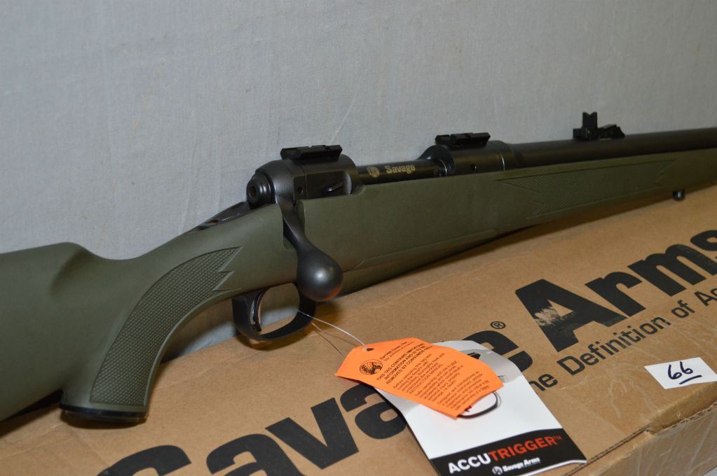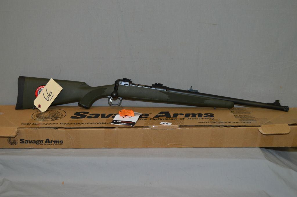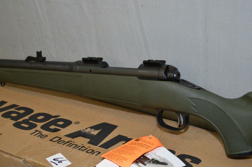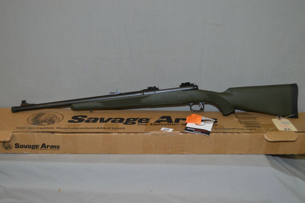 Savage Model 11 Hog Hunter .338 Federal Cal Bolt Action Rifle w/ 20" bbl [ appears as new , test fired,w/orig box & cable lock, hanging tag, blued finish, barrel sights, & scope bases, large bolt knob, checkered grain composite stock w/recoil pad ] Ser # J604699