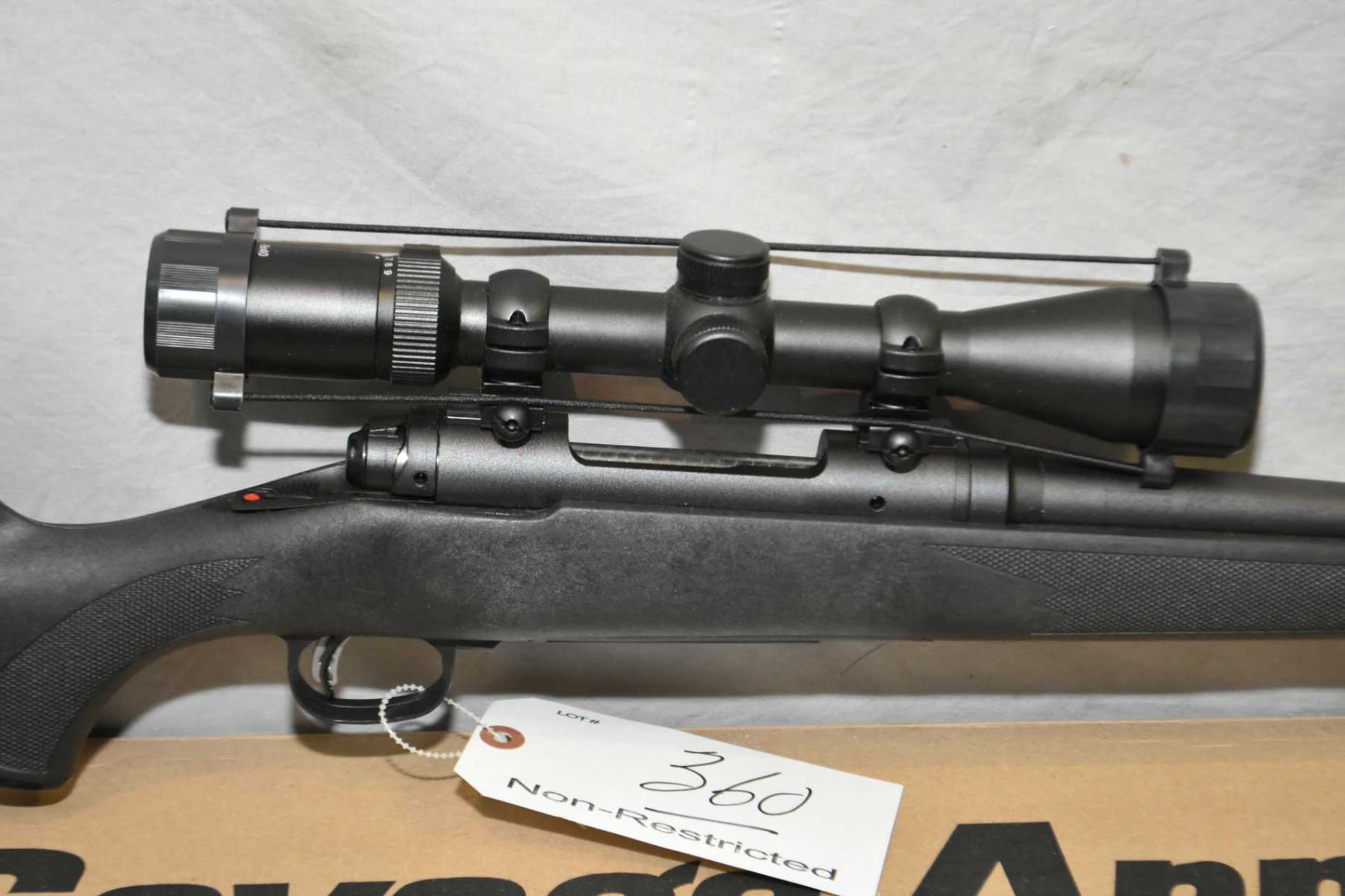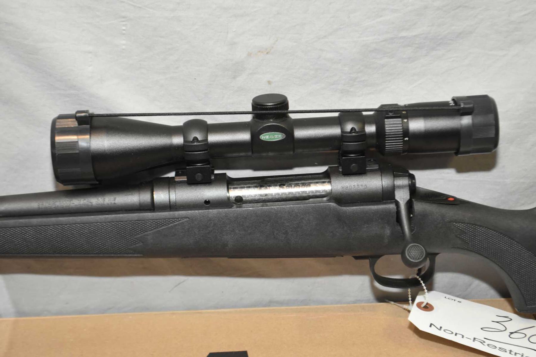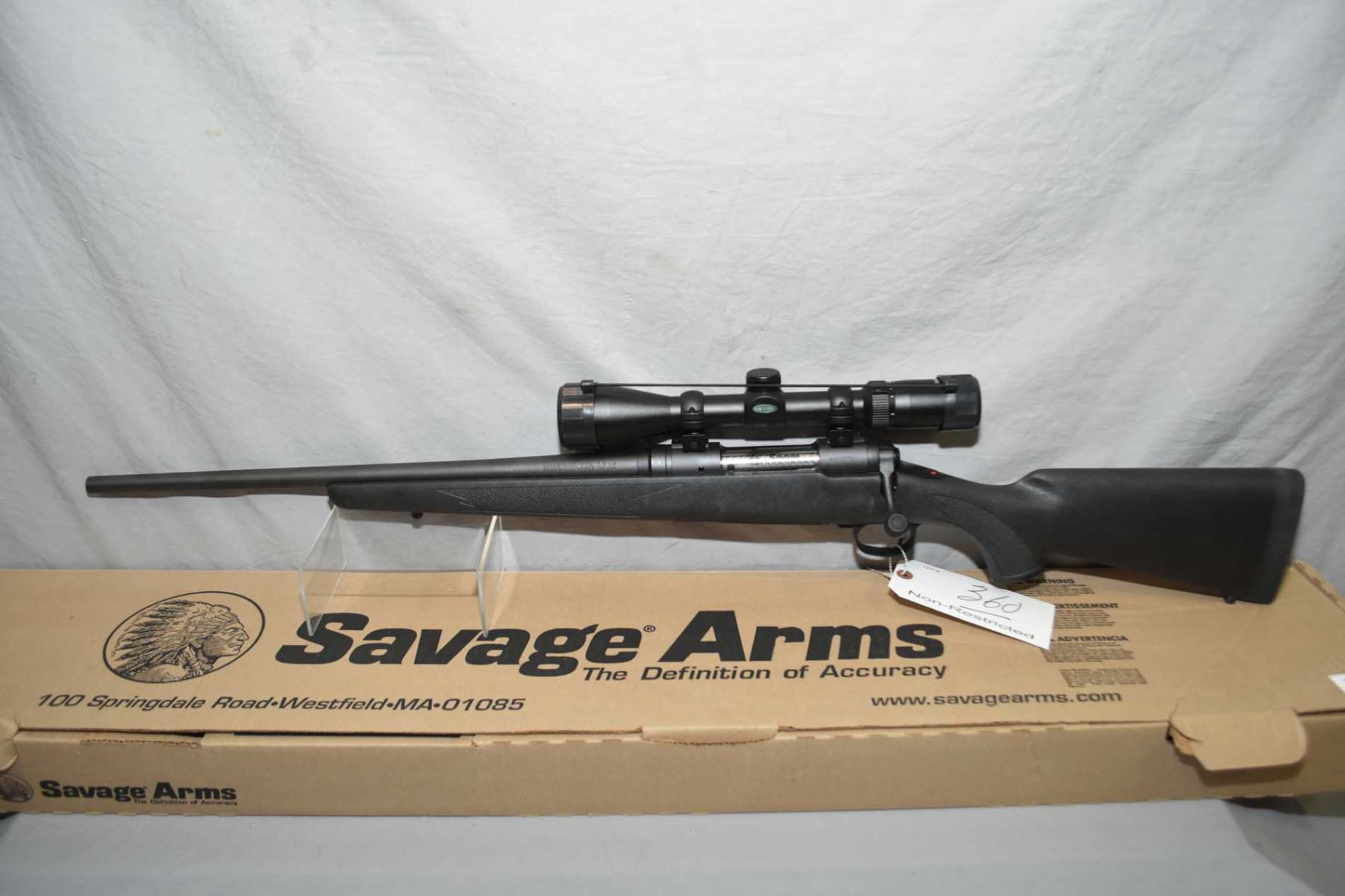 Savage Model 11 Youth Axis Left Hand .308 Win Cal Mag Fed Bolt Action Rifle w/ 20" bbl [ appears as new in orig box, flat black finish, black composite pistol grip stock and forend, with recoil pad, Accu trigger, no sights but fitted w/ Weaver 3 x 9 x 40 Scope w/rings & bases, plastic caps ] Ser # H803370