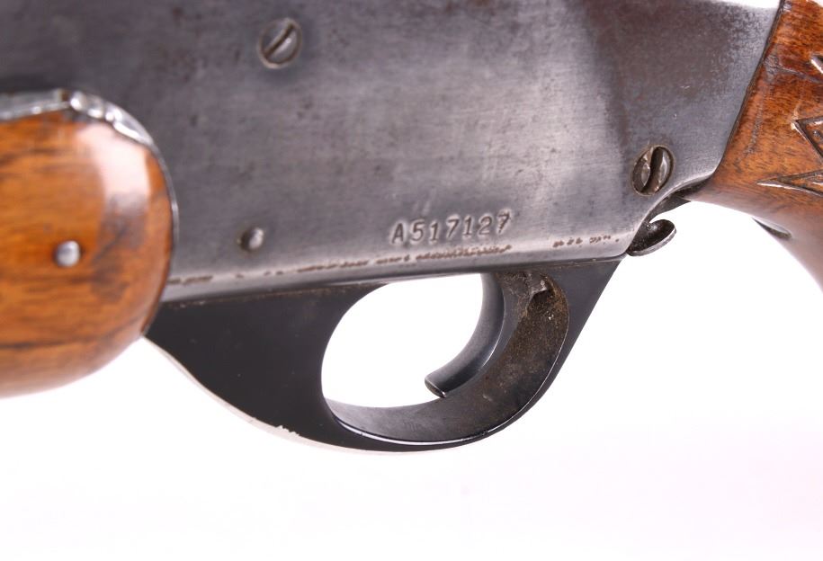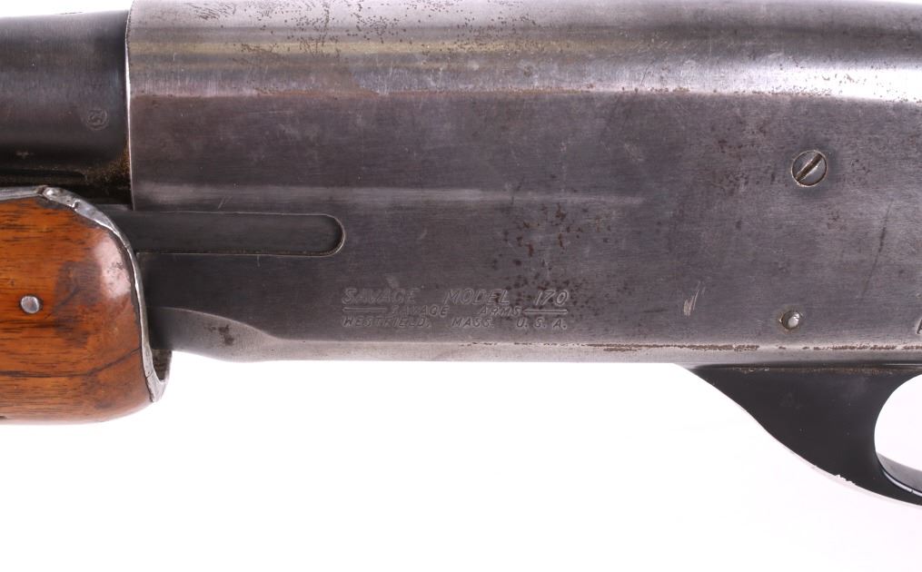 For your consideration is a Savage Model 170 slide action rifle chambered in .30-30. This beautiful rifle features a 22” tapered round blue’d barrel. The barrel is fixed with a fixed front sight and a folding rear sight. The barrel is marked “Proof Tested Cal. 30-30” on the right while the receiver is marked “Savage Model 170 – Savage Arms – Westfield, Mass. U.S.A.” The rifle has a straight grained walnut stock with checkered pistol grip. The rifle is in good condition overall with minor loss to the original factory bluing. The rifle has a bright bore and crisp rifling. Serial Number: A517127. This is a modern firearm and requires a FFL transfer or NICS background check. Matt
