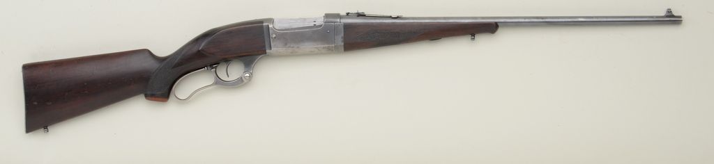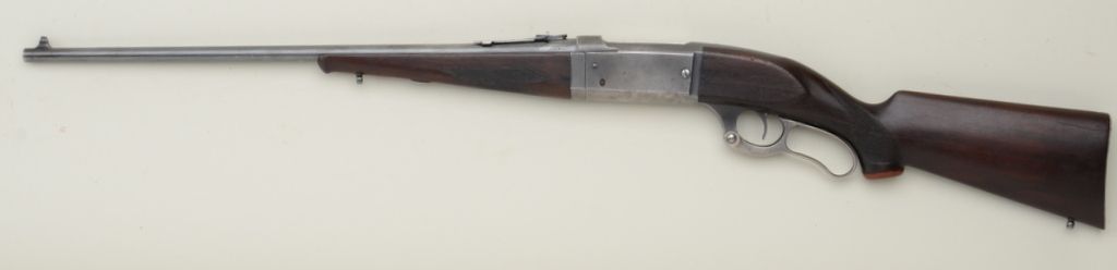 Savage Model 1899 lever action rifle, .250-3000 cal., 22” round barrel, blue finish, checkered wood stocks, #240653. This gun is in overall good to very good condition showing muted blue finish on barrel andsilvery patina on receiver, good bore, crisp action, good markings, overall good wood stocks with sling swivel eyelets (front eyelet re-positioned forward of original location that has been filled); brown plastic pistol grip cap added, steel butt plate. Est.: $200-$400.