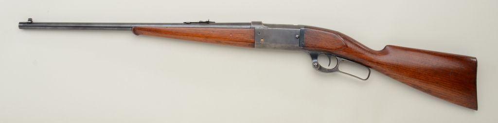 Savage Model 1899 lever action rifle, .303 Savage cal., 22” round barrel, blue finish, cocking indicator, case counter, wood stocks, steel butt plate, #90.612. This gun is in overall good condition showing considerableoriginal muted blue finish with some brighter blue finish in protected areas, good action, near fair bore, very good wood stocks. Est.: $400-$800.